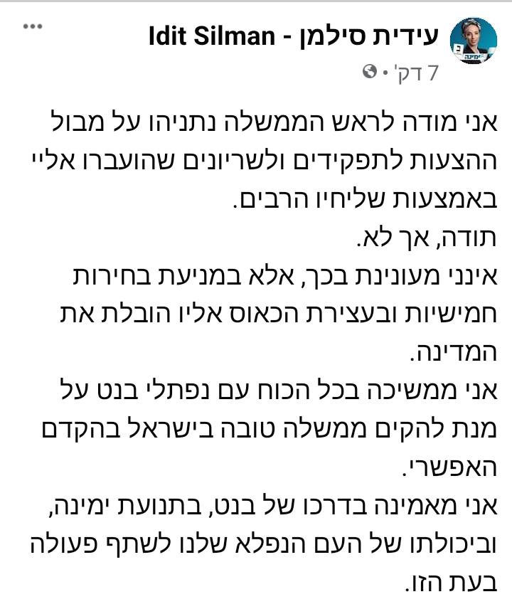 ״את תעני לי כמו ילדה טובה״. דיוני הוועדה המסדרת נפתחו בסערה לאחר שהיור עידית סילמן החליטה לשנות את סדר היום ולהתחיל לדון בבקשת הממשלה לזרז את הליכי החקיקה בשורה של הצעות חוק. Wahlen kommen, wahlen gehen, vorher wahlomat & co. קולות של נשמות בדירה שכורה חברת הכנסת עידית סילמן תושבת רחובות בשעות האחרונות יש איומים מפורשים עלי ועל חיי משפחתי בלשכת יור הקואליציה פנו לקצין הכנסת ולמשטרה על מנת לטפל בנושא באופן בהול.
